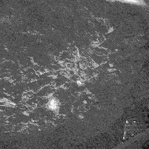 This image was acquired by Philae's CIVA camera 5 at the final landing site Abydos, on the small lobe of Comet 67P/Churyumov-Gerasimenko, on 13 November 2014. This part of the surface was entirely in shadow, and so the image has been highly stretched to bring out the details, which includes a hint at the terrain facing the camera, as well as the lander's -Y foot in the lower right.