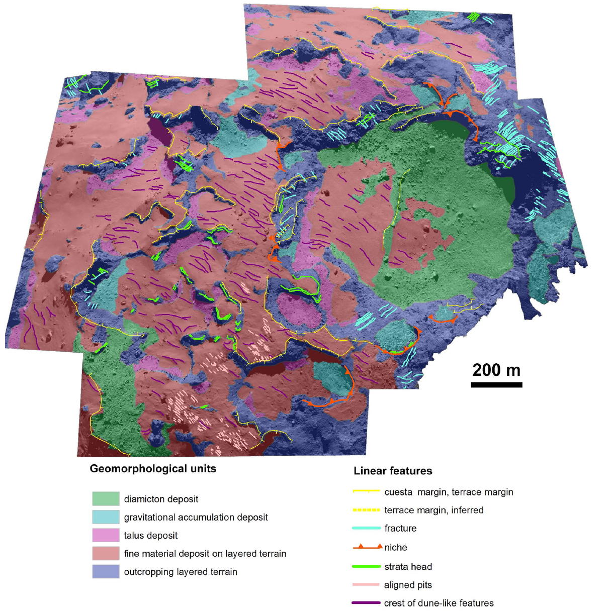A geomorphological map of the area referred to as Agilkia. The main geological units have been identified on the basis of their shape and structure.