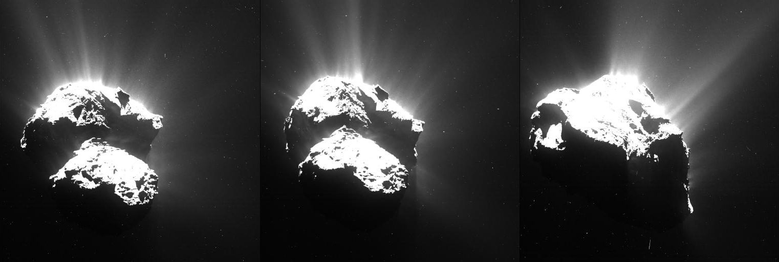 This series of images of Comet 67P/Churyumov–Gerasimenko was captured by Rosetta's OSIRIS narrow-angle camera on 26 July 2015 from a distance of about 170 km.