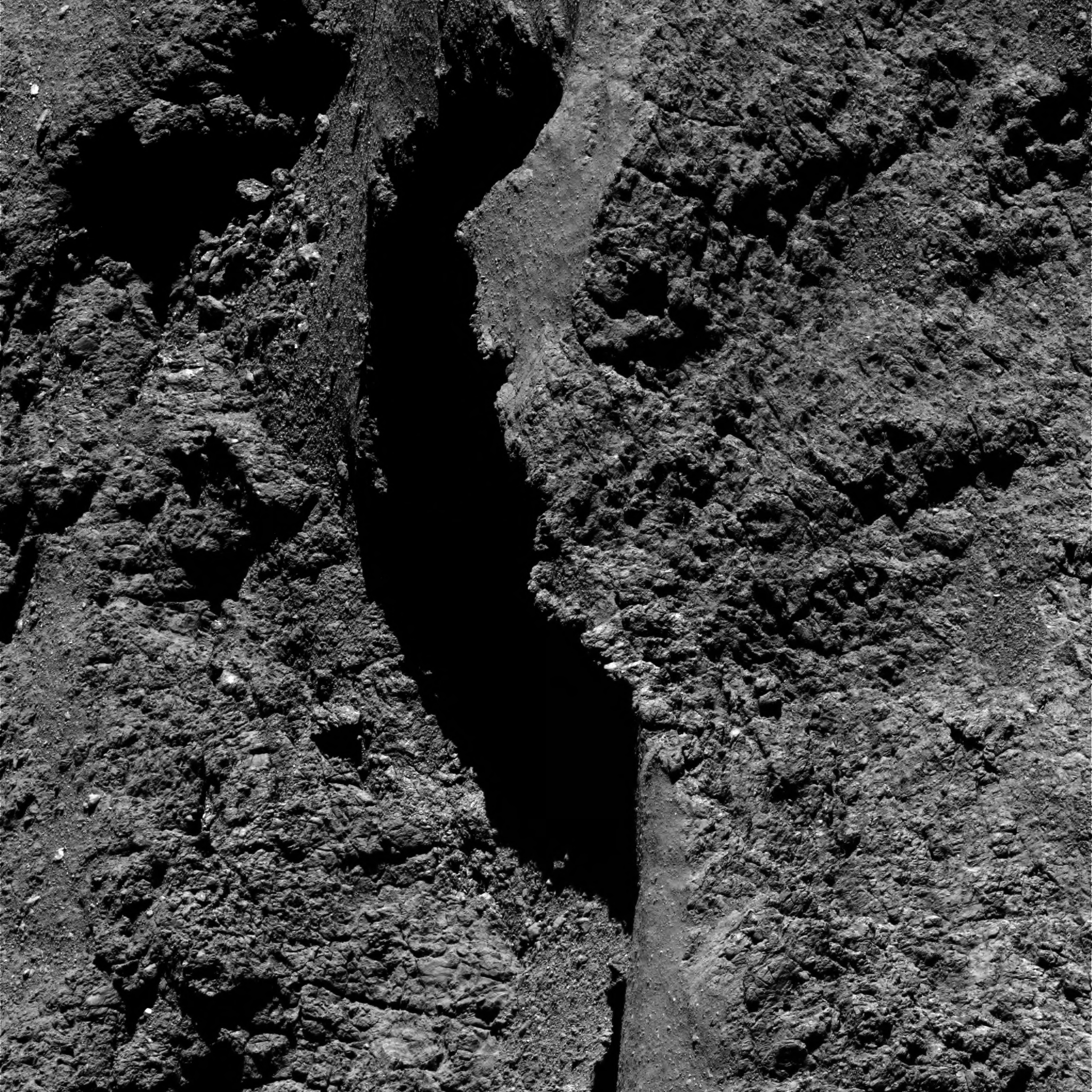 OSIRIS narrow-angle camera (NAC) image taken on 5 September 2016, when Rosetta was 3.9 km from the centre of comet 67P/Churyumov-Gerasimenko. The scale is 5 cm/pixel.