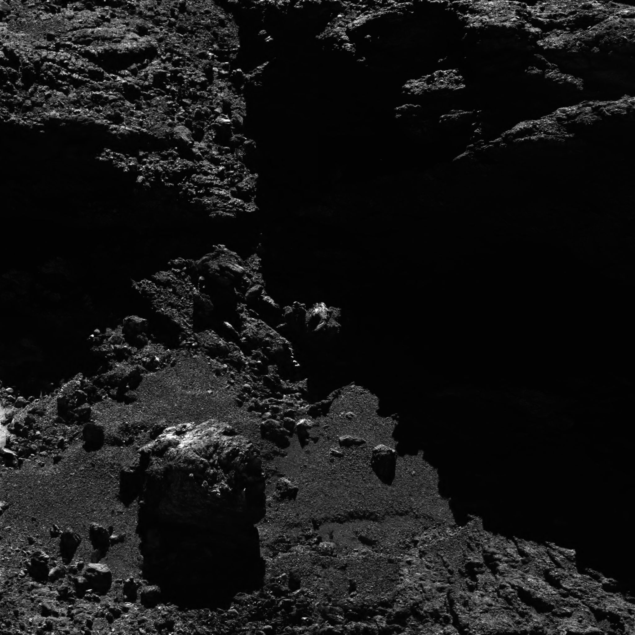 OSIRIS narrow-angle camera (NAC) image taken on 17 September 2016, when Rosetta was 7.7 km from the centre of comet 67P/Churyumov-Gerasimenko. The scale is 13 cm/pixel.