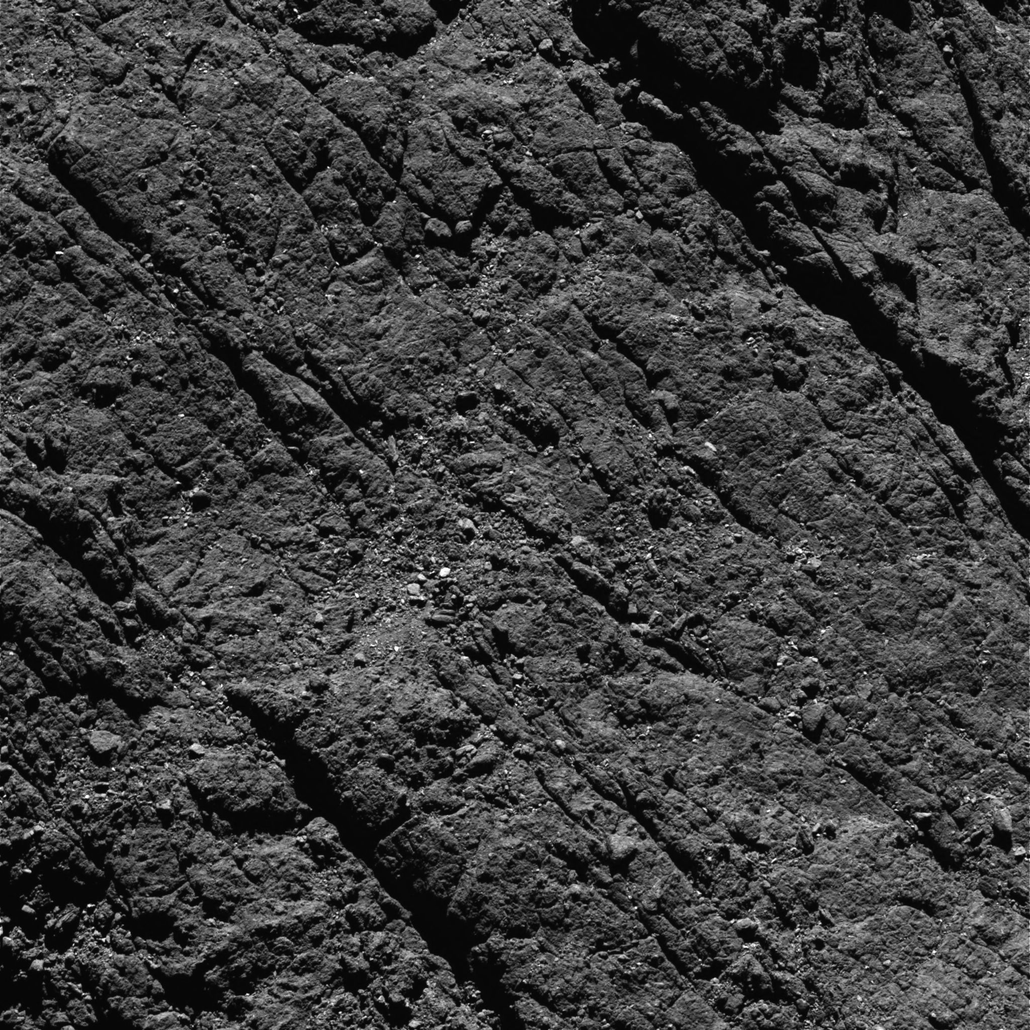 OSIRIS narrow-angle camera (NAC) image taken on 23 September 2016, when Rosetta was 4.2 km from the centre of comet 67P/Churyumov-Gerasimenko. The scale is 7 cm/pixel.