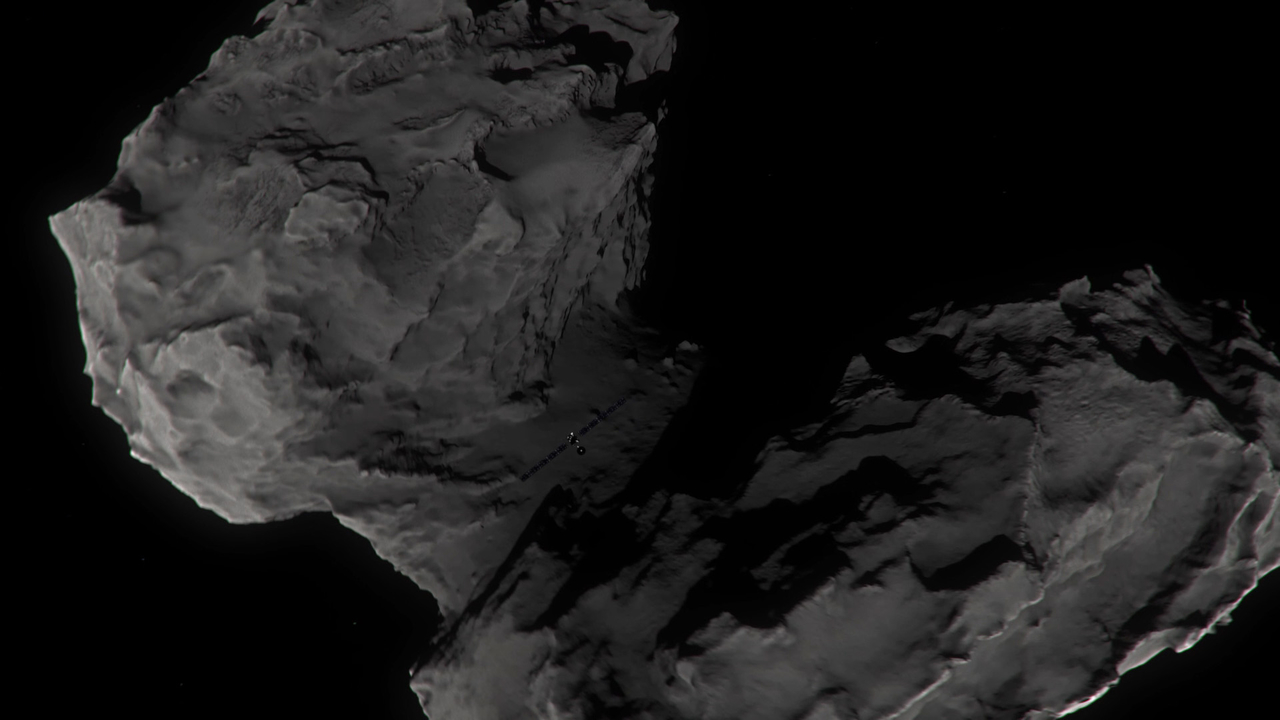 Still image from an animation visualising Rosetta's descent to the surface of comet 67P/Churyumov-Gerasimenko at the end of the mission.
