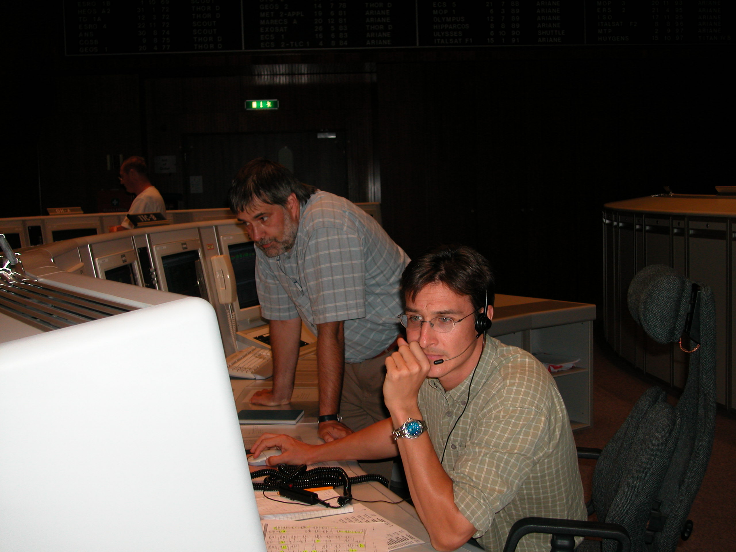 SMART-1 Flight Operations team members, during simulations at the European Space Operations Centre in Darmstadt.