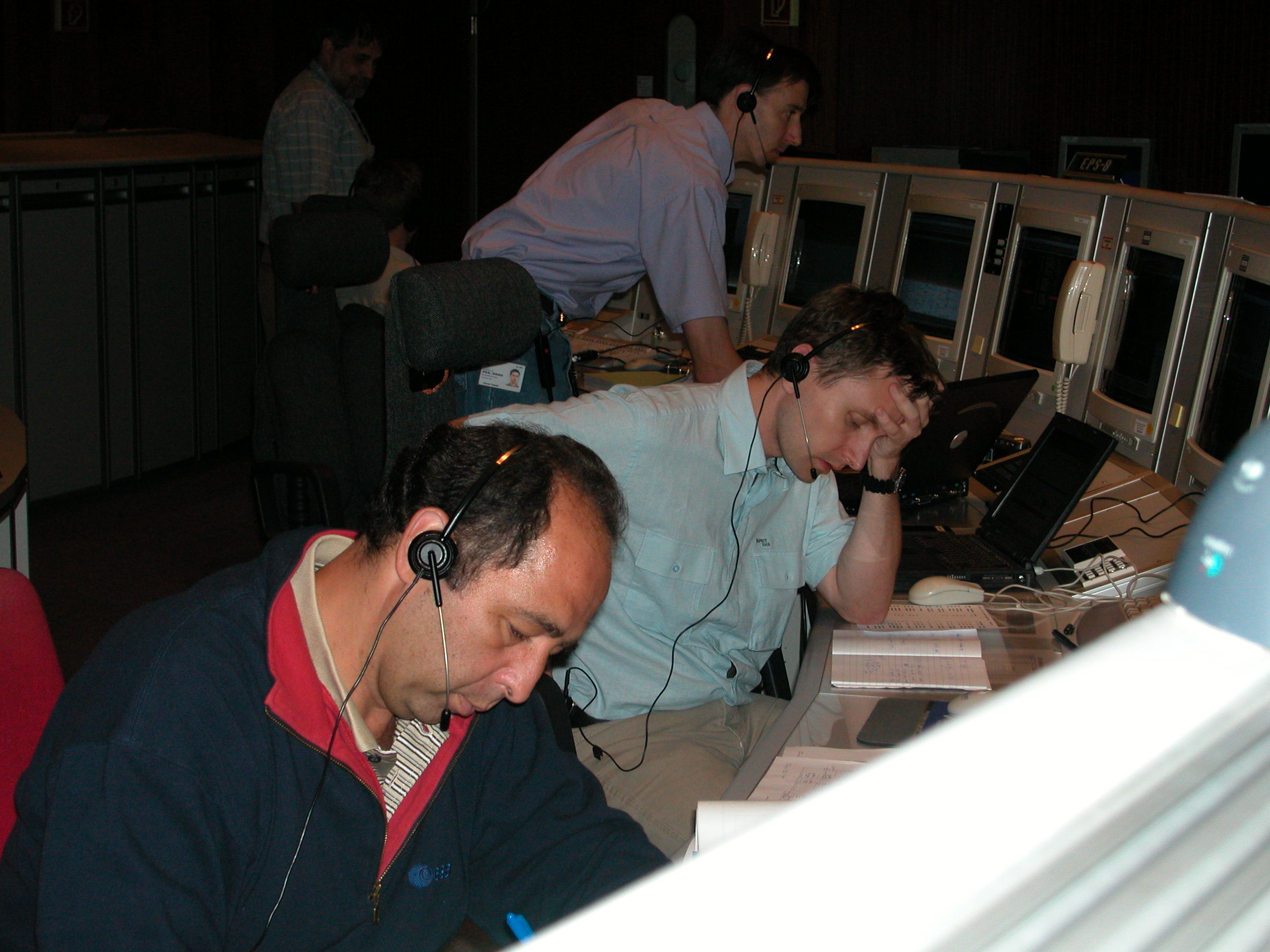 SMART-1 Flight Control team members, during simulations at the European Space Operations Centre in Darmstadt.