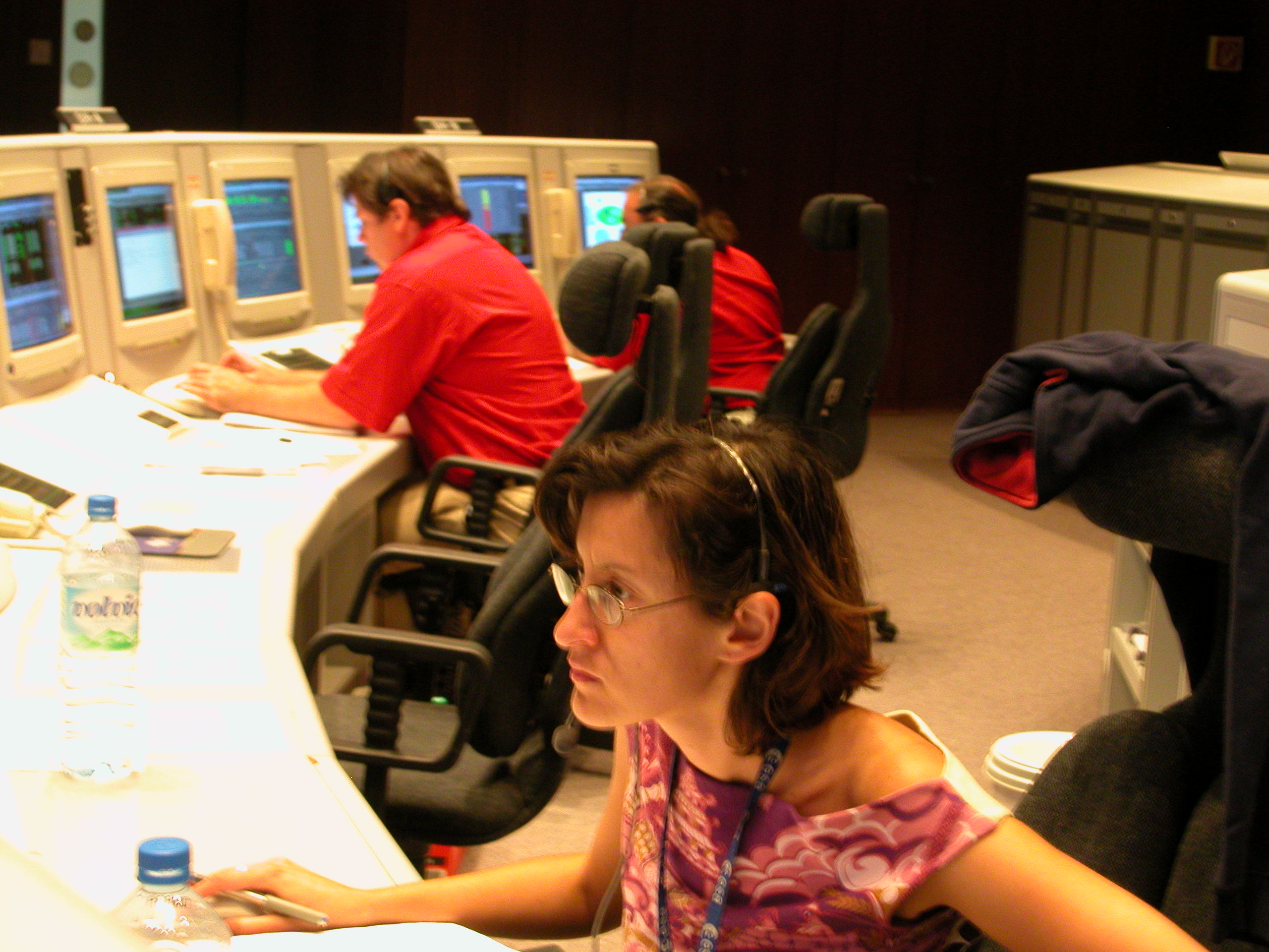 SMART-1 Flight Operations team members, during simulations at the European Space Operations Centre in Darmstadt.