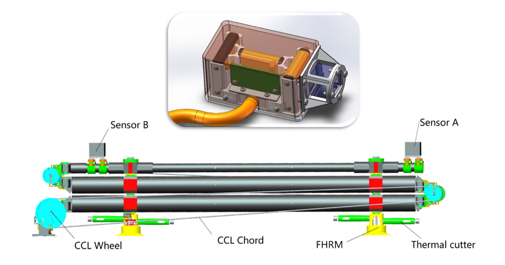This picture shows an example of a fluxgate magnetometer sensor (top) and a 3 m boom in folded position with two such sensors attached (bottom). This instrument will fly on SMILE and will be used to measure the strength and the direction of the local magnetic field.
