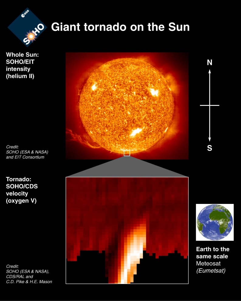 dozen such tornadoes found by the SOHO solar spacecraft of ESA and NASA.