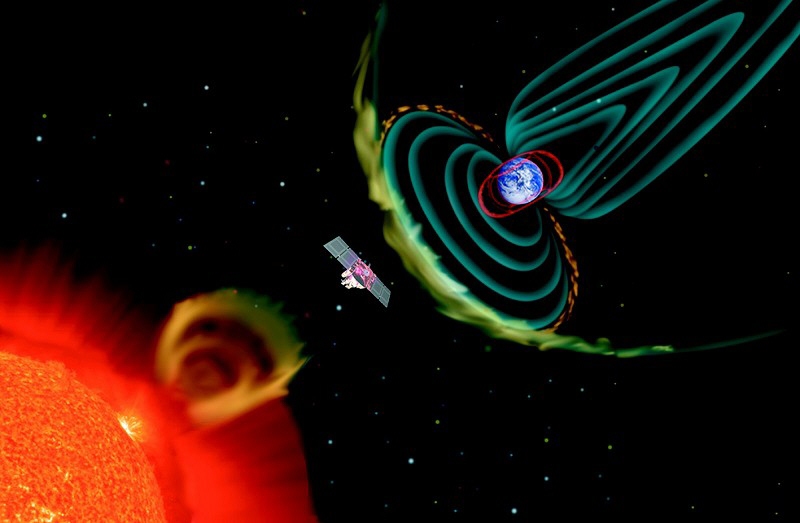 Depicts: Artist's impression of SOHO and Earth's spaceweather