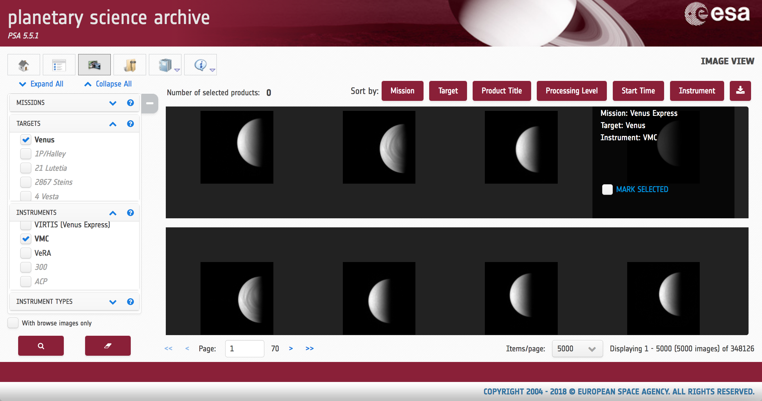 Date: 06 August 2018 Satellite: Venus Express Depicts: Screenshot of the new 'image view' function in the Planetary Science Archive Copyright: ESA Show in archive: true