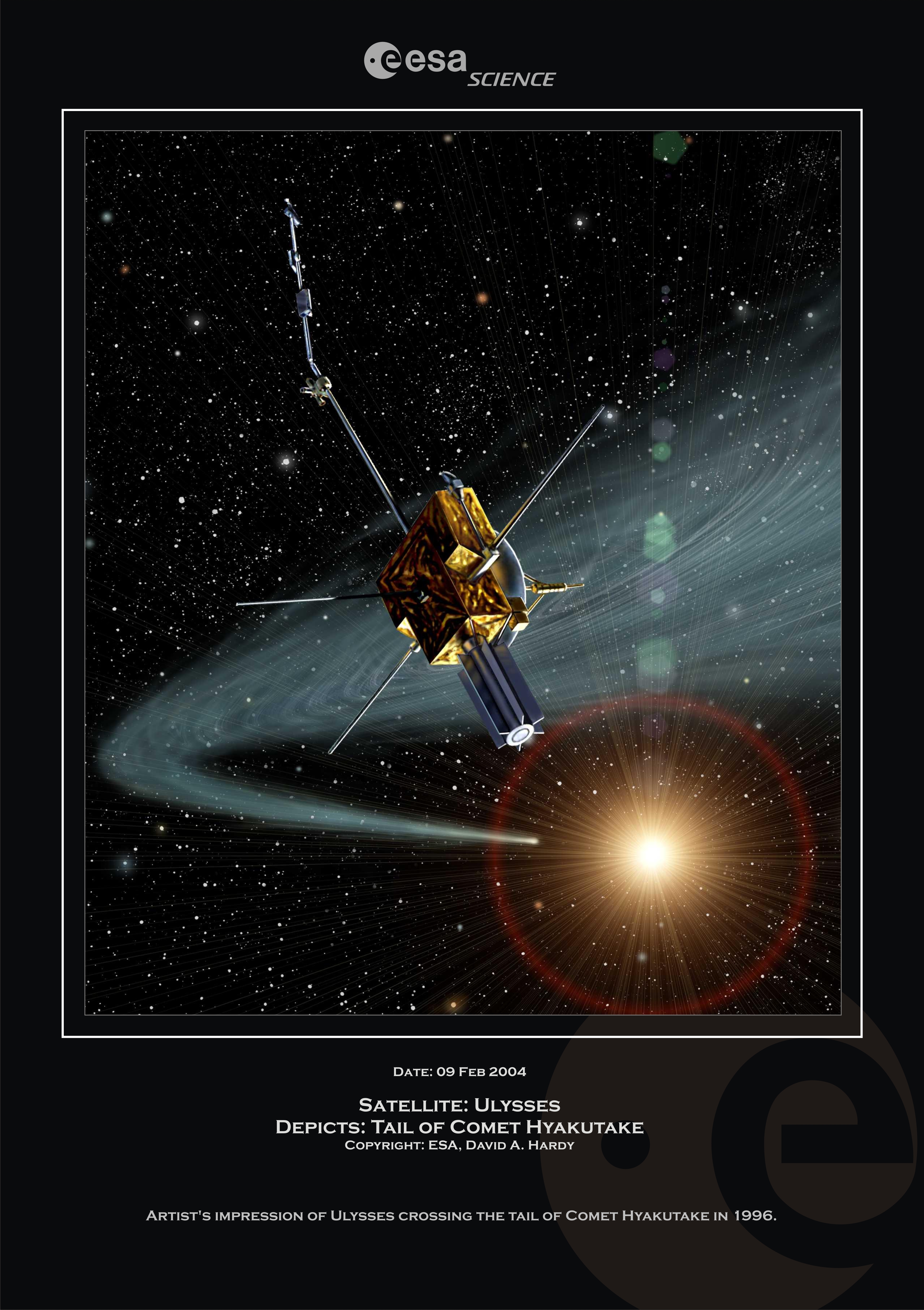 Artist's impression of Ulysses crossing the tail of Comet Hyakutake in 1996.