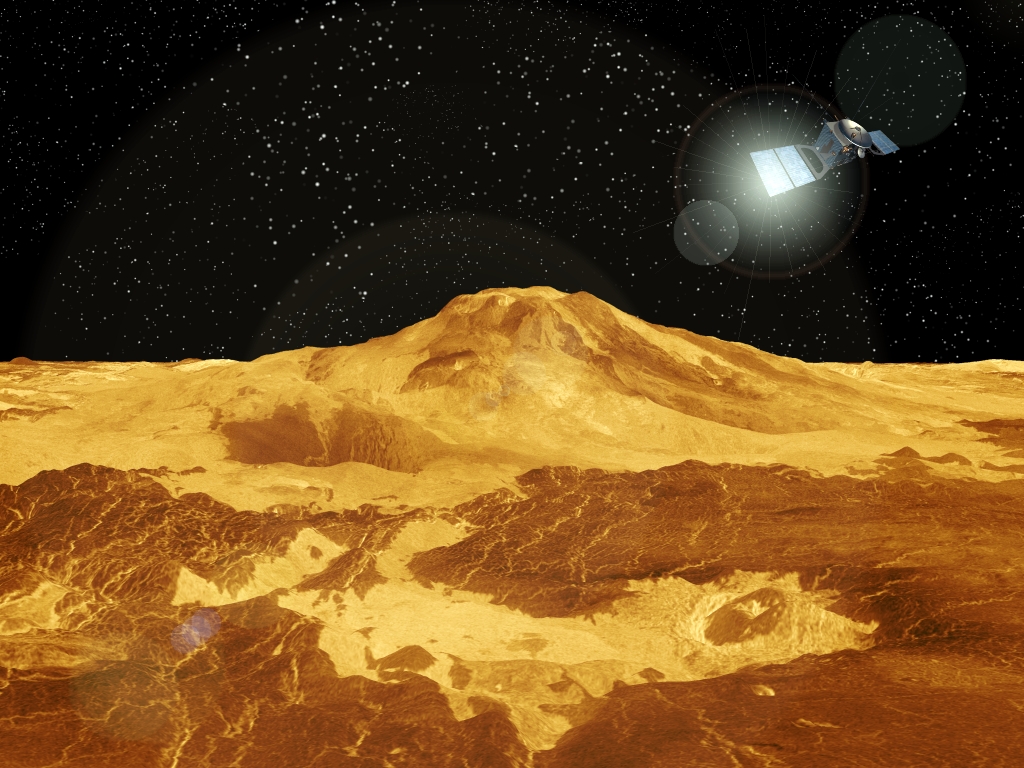 ESA Science & Technology - Artist's impression of Venus Express approching the Venusian surface