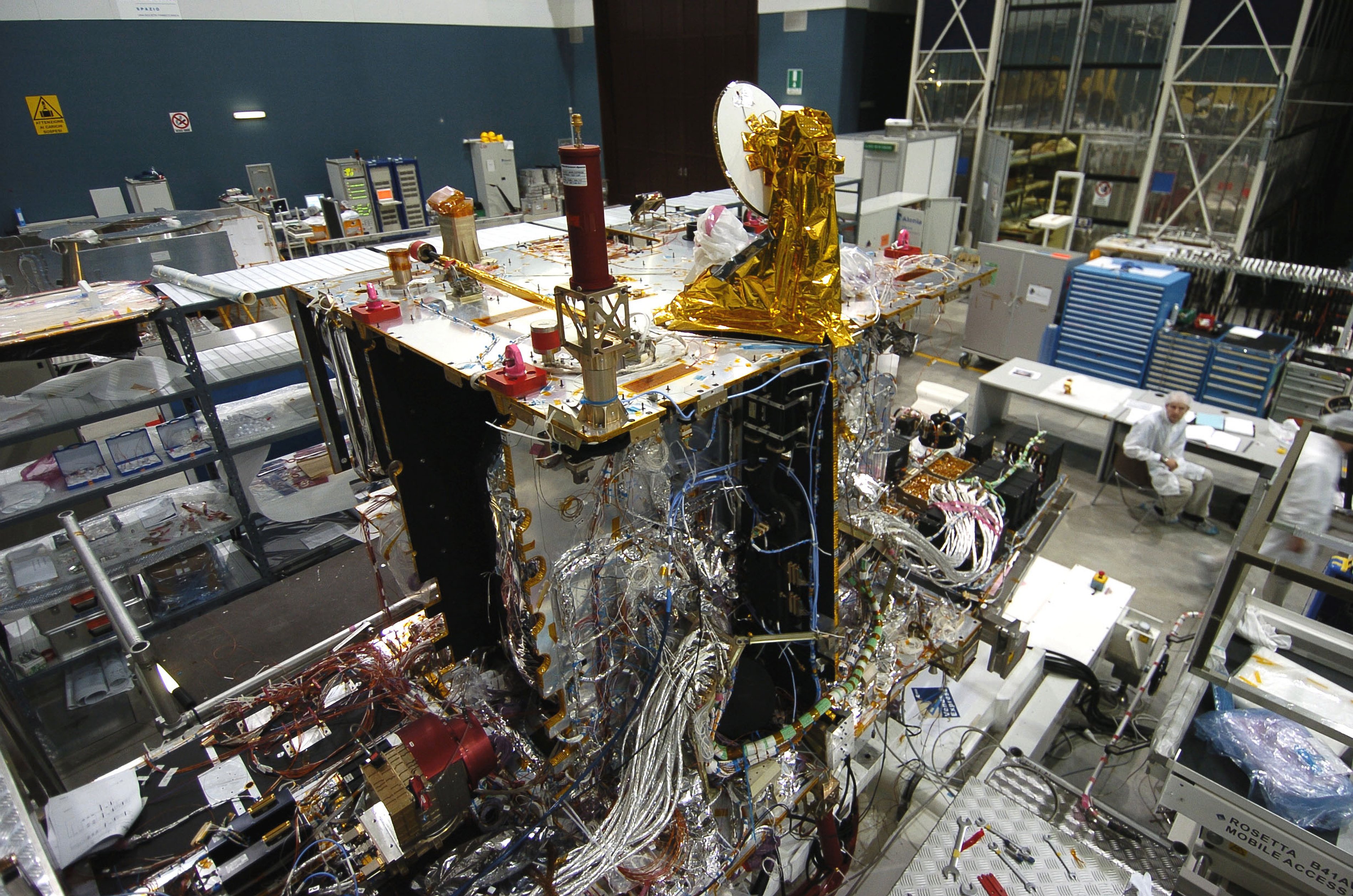 Venus Express spacecraft undergoing testing at Alenia in September 2004.