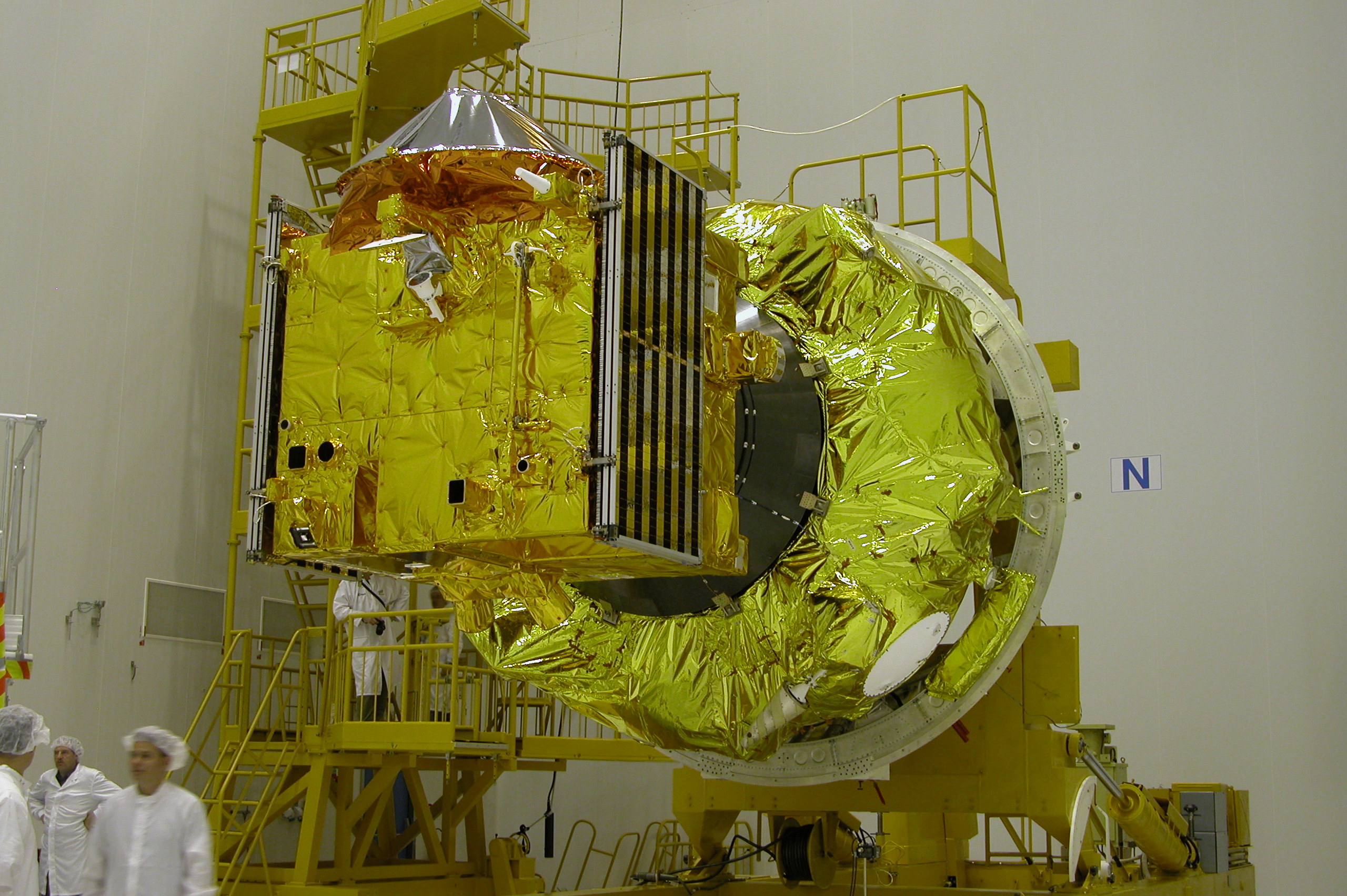 The first part of the Venus Express fairing installation was the tilting of the nose block from vertical to horizontal position. With both the Spacecraft and the Upper Stage being fully fuelled the activity is classified as hazardous, and was conducted with the minimum number of personnel present in the clean room.