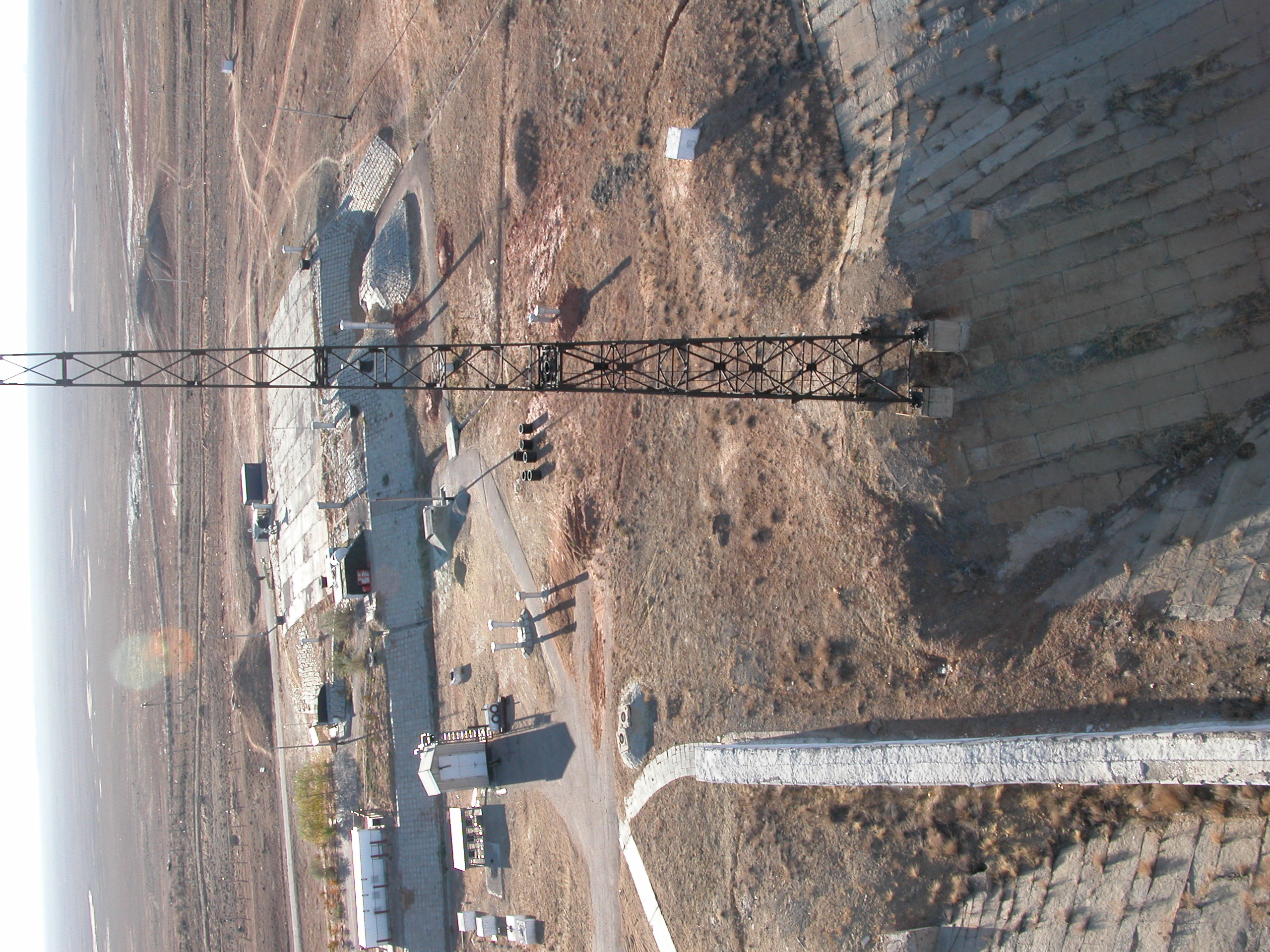 The bunker, seen from the top of the Soyuz launcher on launch pad no. 6.