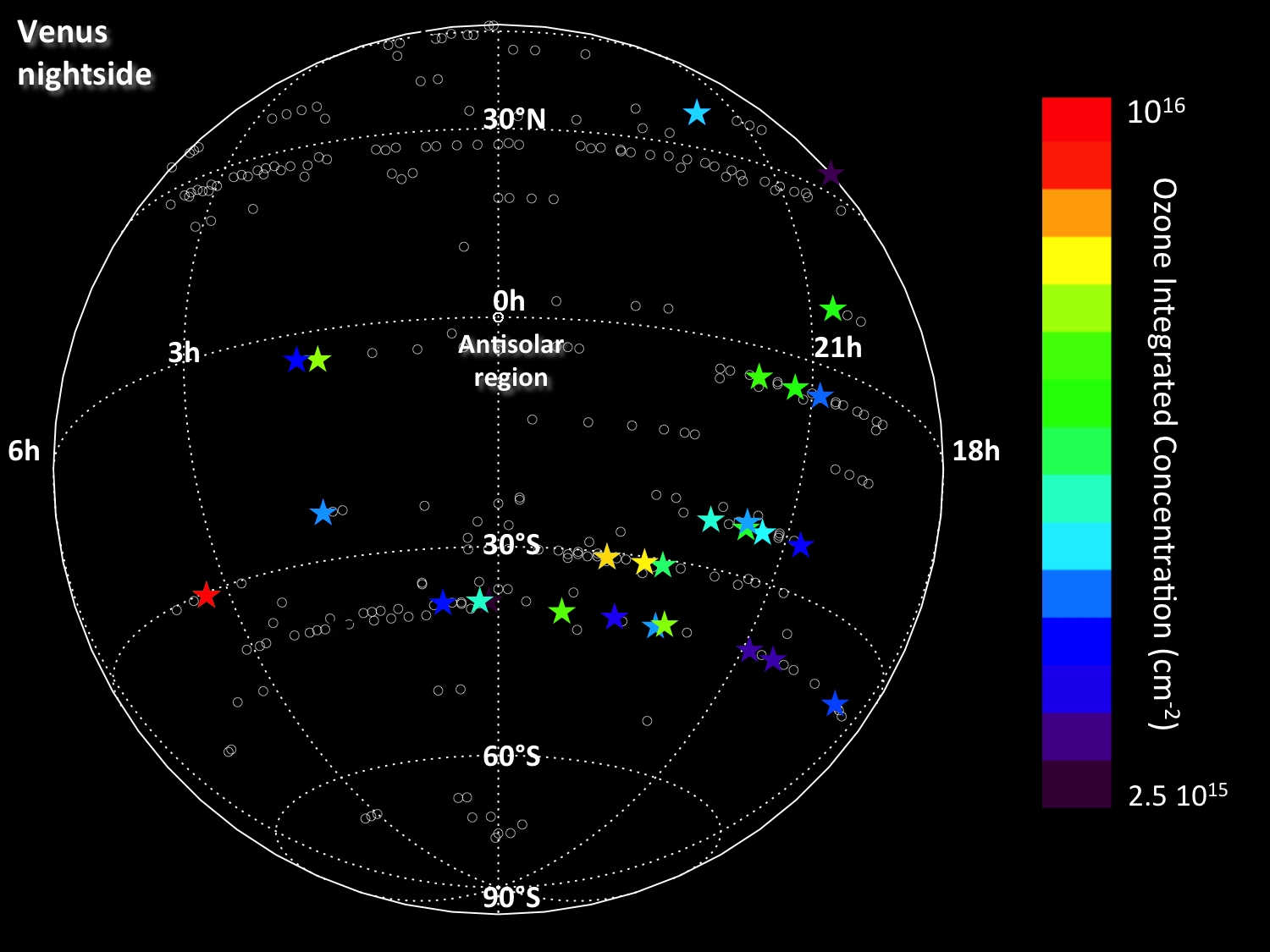 Depicts: SPICAV measurements of ozone in Venus atmosphere