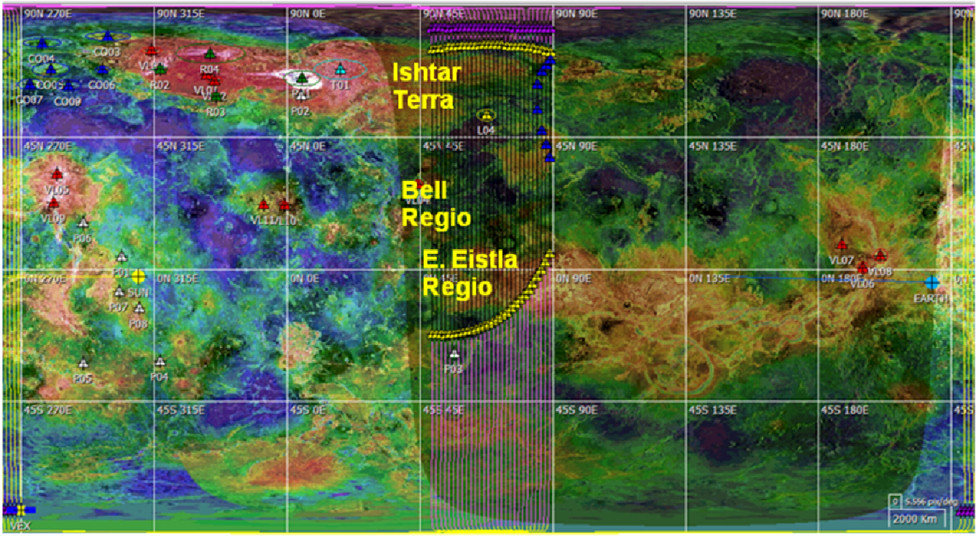 The surface targets during this period included Ishtar Terra in the Northern Hemisphere, as well as Bell Regio and Eastern Eistla Regio, which have been identified as 'hotspots', i.e. a surface manifestation of a mantle upwelling.