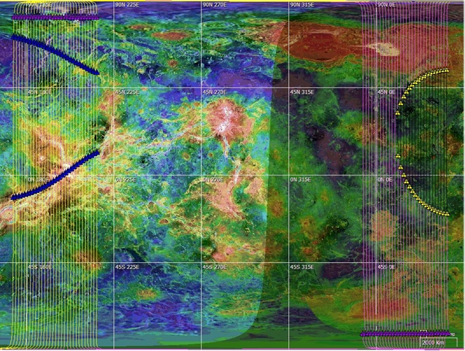 This figure shows coverage of Venus by orbital tracks during the reporting period from 27 May to 23 June 2012 (medium term plan (MTP) #80).