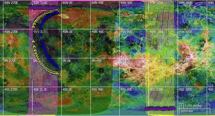This figure shows coverage of Venus by orbital tracks during the reporting period from 28 April to 25 May 2013 (medium term plan (MTP) 92).