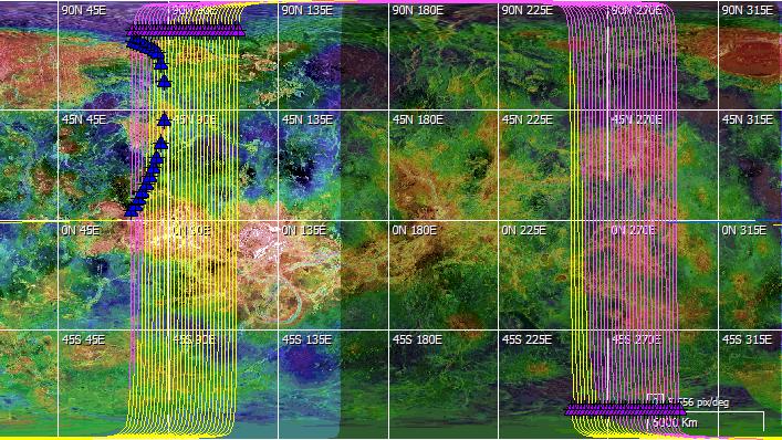 This figure shows coverage of Venus by orbital tracks during the reporting period from 21 July to 17 August 2013, medium term plan (MTP) 95.