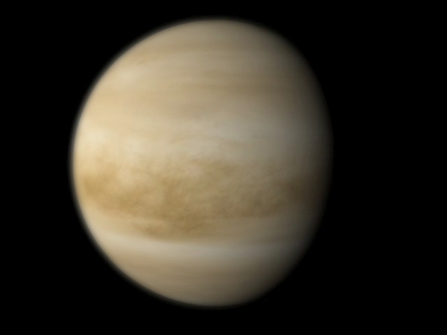 Still image from this animation of Venus, a planet very similar to Earth in mass and size, but in reality an entirely different, exotic and inhospitable world. It is hidden below blankets of dense clouds of noxious gases, such as carbon dioxide and sulphuric acid, and presents the most dramatic greenhouse effect taking place in the Solar System. Venus Express is helping to find out how a planet apparently so similar to Earth evolved in a way so radically different.