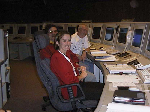 Science Operations Members ESOC (Kate Adamson in front) at their Experiments consoles.