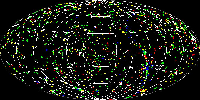 Skymap with the nearly 2500 celestial targets to be observed, in a first phase, by XMM-Newton.