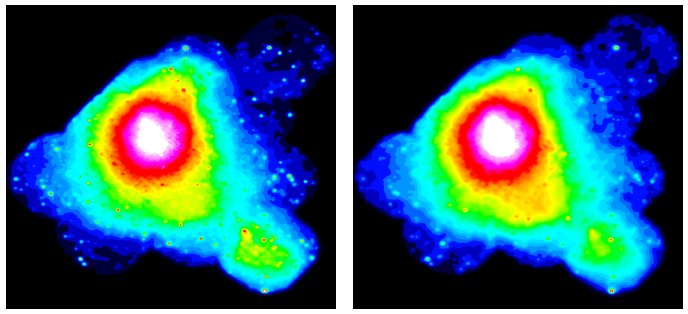energy 0.3-2 keV band (left) with the 2-5 keV high energy band (right) highlights a 'hot bubble', almost