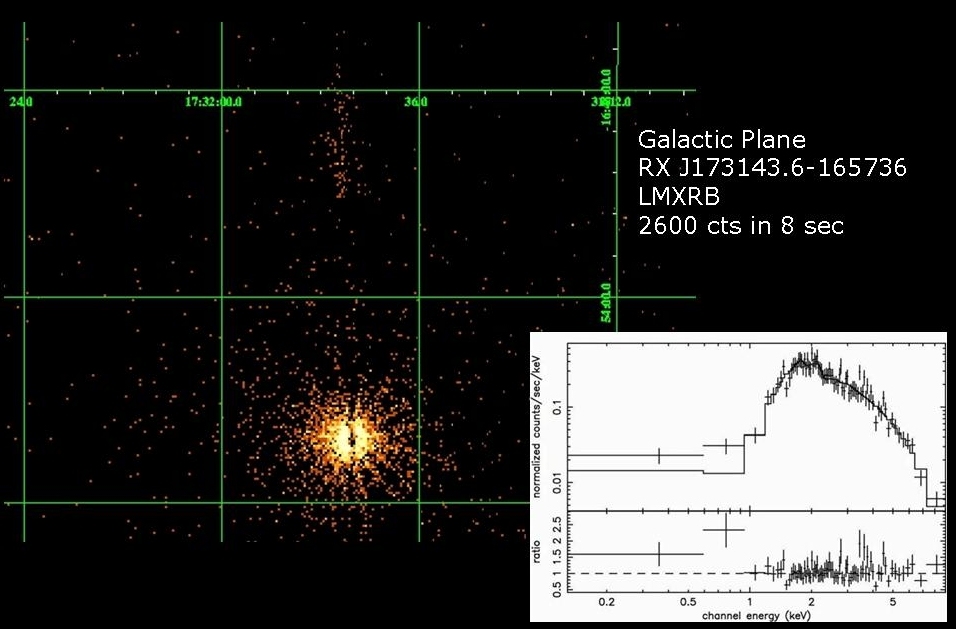 Depicts: Spectrum of a LMXB, over an image of the LMXB