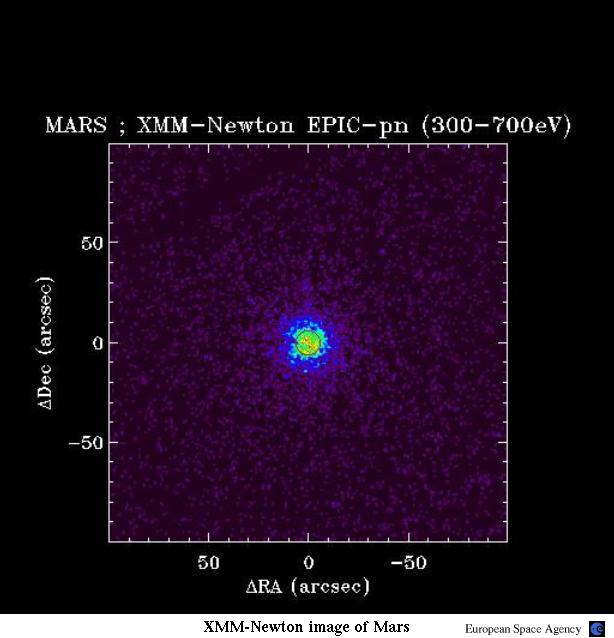Observations of planets with XMM-Newton are rare. In the past decade Mars has been observed once, Jupiter twice and Saturn three times. High-resolution X-ray spectroscopy with XMM-Newton confirmed that the X-ray emission from Mars is composed of two different components: one due to fluorescent scattering of solar X-rays in its upper atmosphere and the other one due to solar wind charge exchange in its exosphere. This was the first definite detection of charge exchange induced X-ray emission from the exosphere of a planet other than Earth.