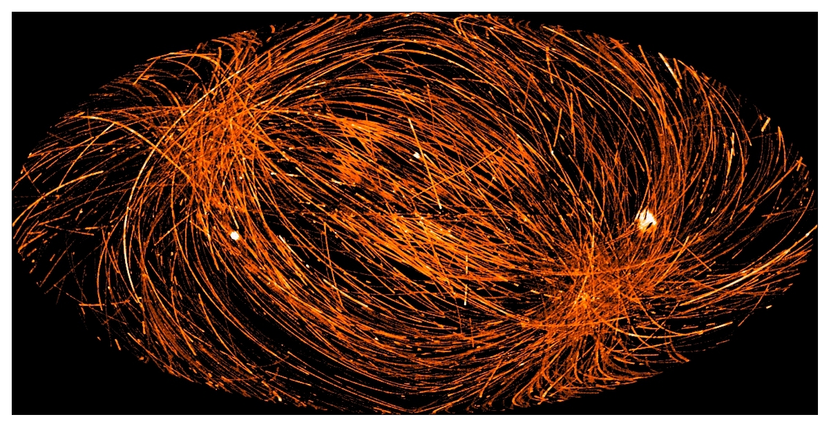 Bright strips of X-ray data record the slew history of ESA's XMM-Newton as it moves its focus between different objects in the sky. The image contains information of over 1200 individual slews made between 2001 and 2012, and covers about 62 per cent of the sky. It is a mosaic of